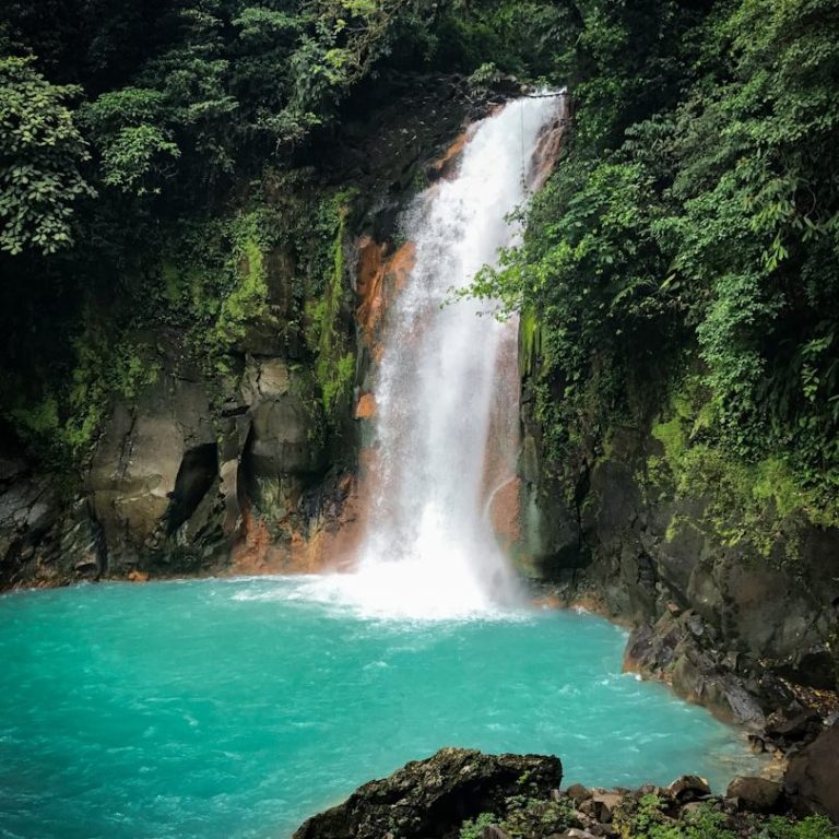 Nichée au pied du volcan Arenal, La Fortuna est réputée pour ses sources chaudes, ses cascades spectaculaires, et ses activités de plein air comme trek, rafting et observation de la faune.